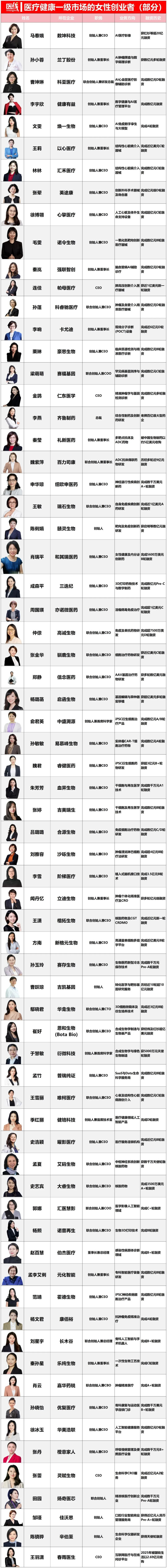 但医线Insight全面梳理后,发现医疗健康赛谈正在败露越来越多女性创业者。